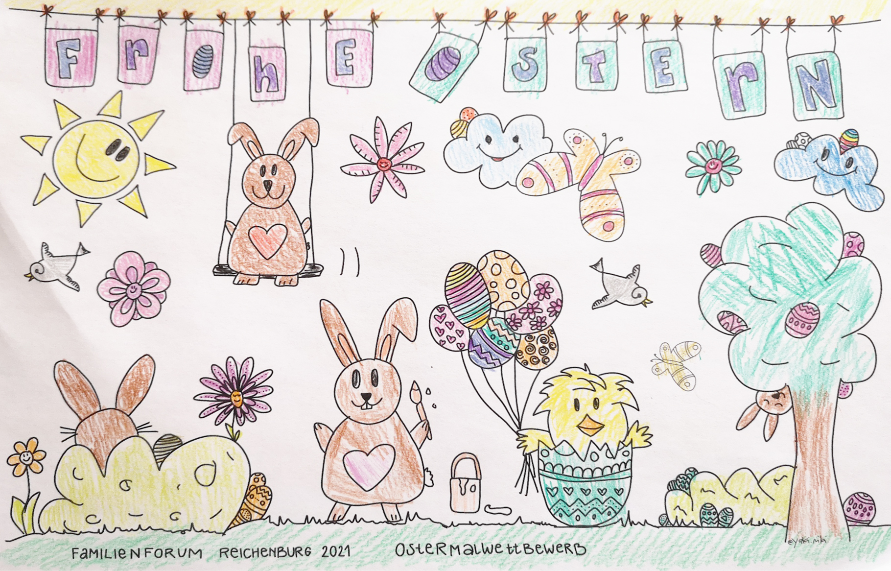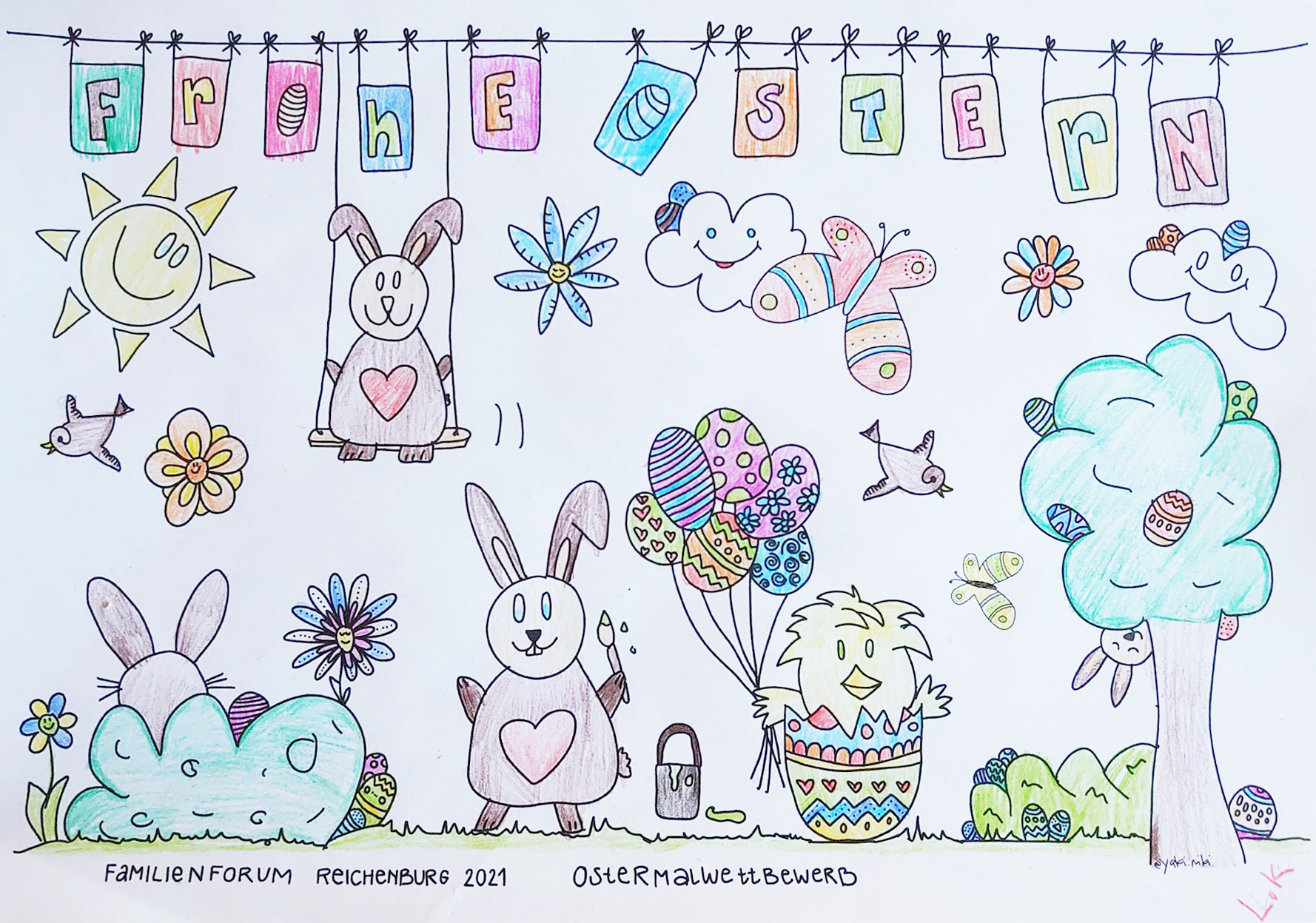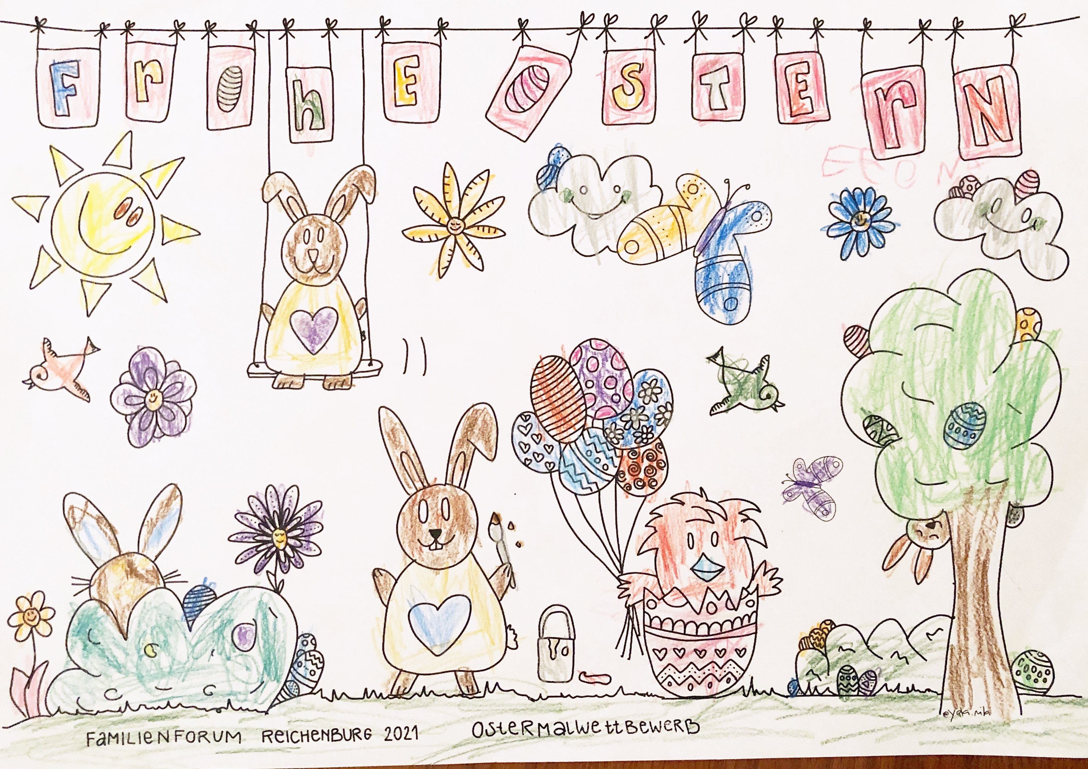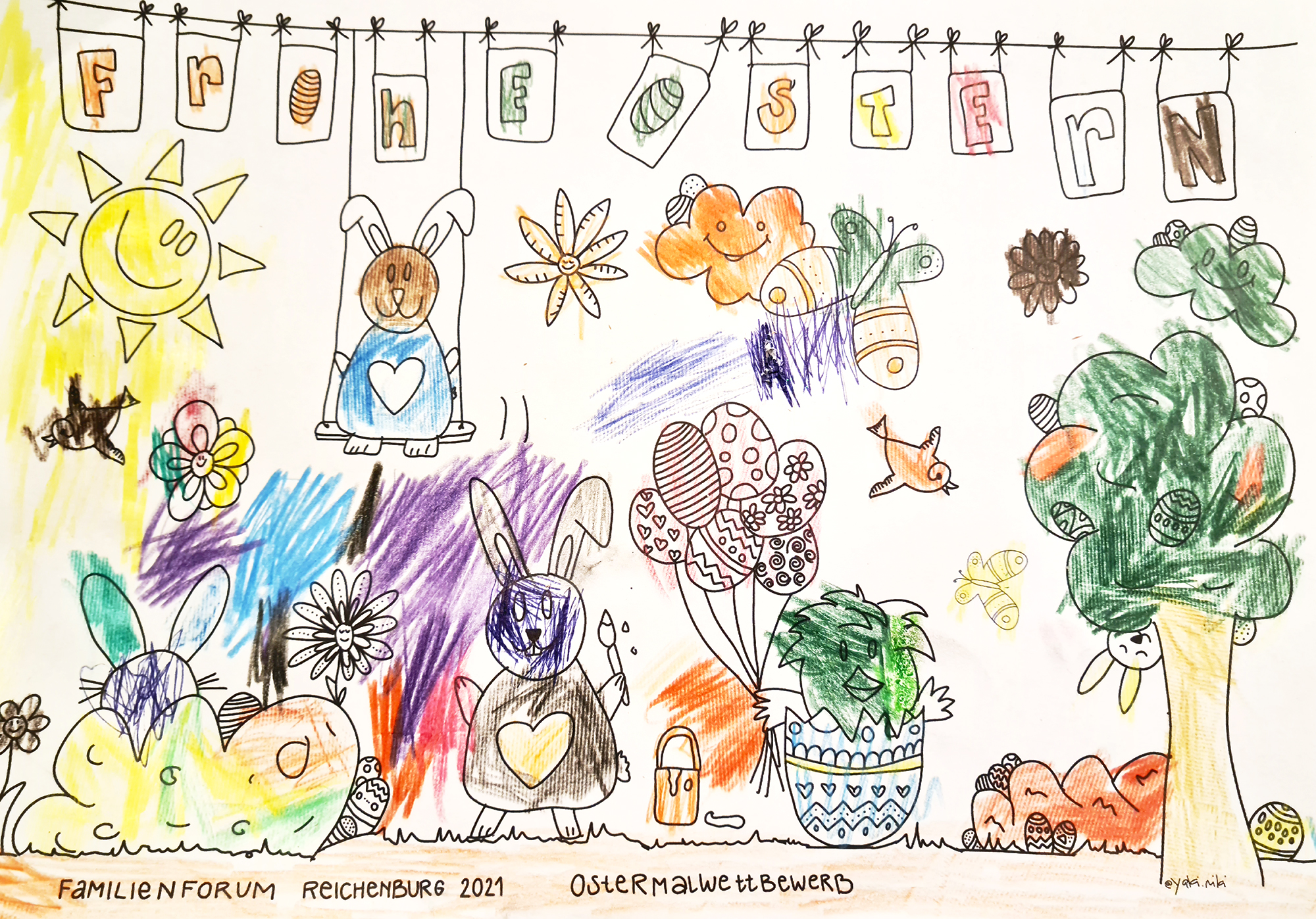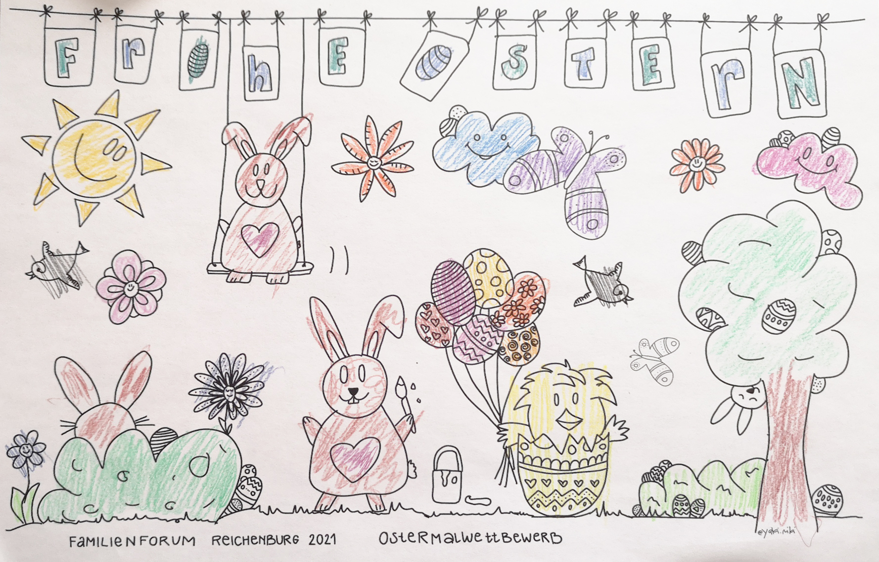 Einreichen der Zeichnungen: bis Donnerstag, 25. März 2021 per Mail an osterhase@familienforum-reichenburg.ch
