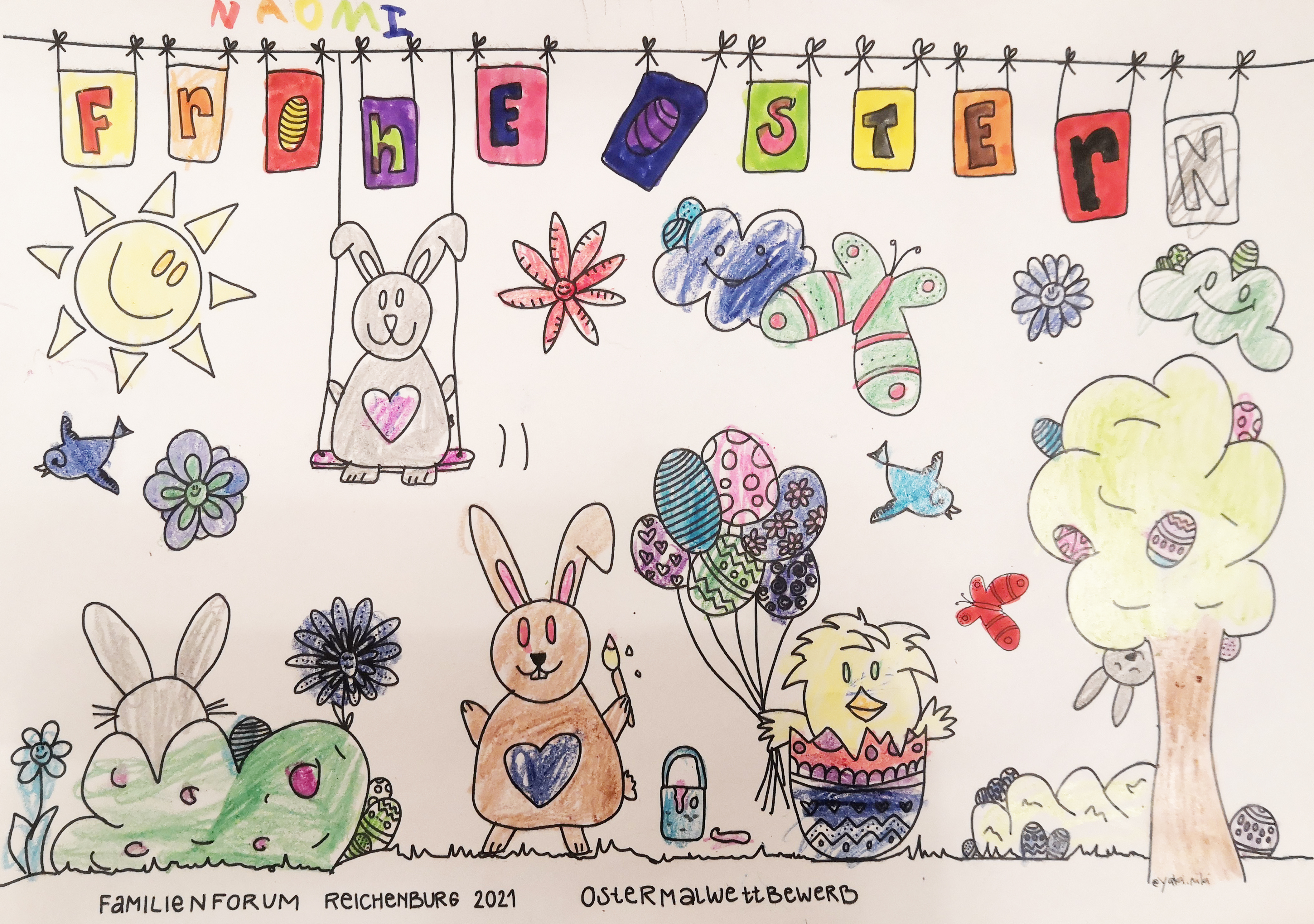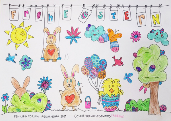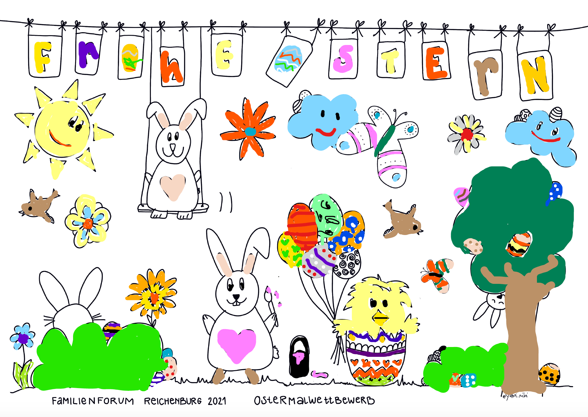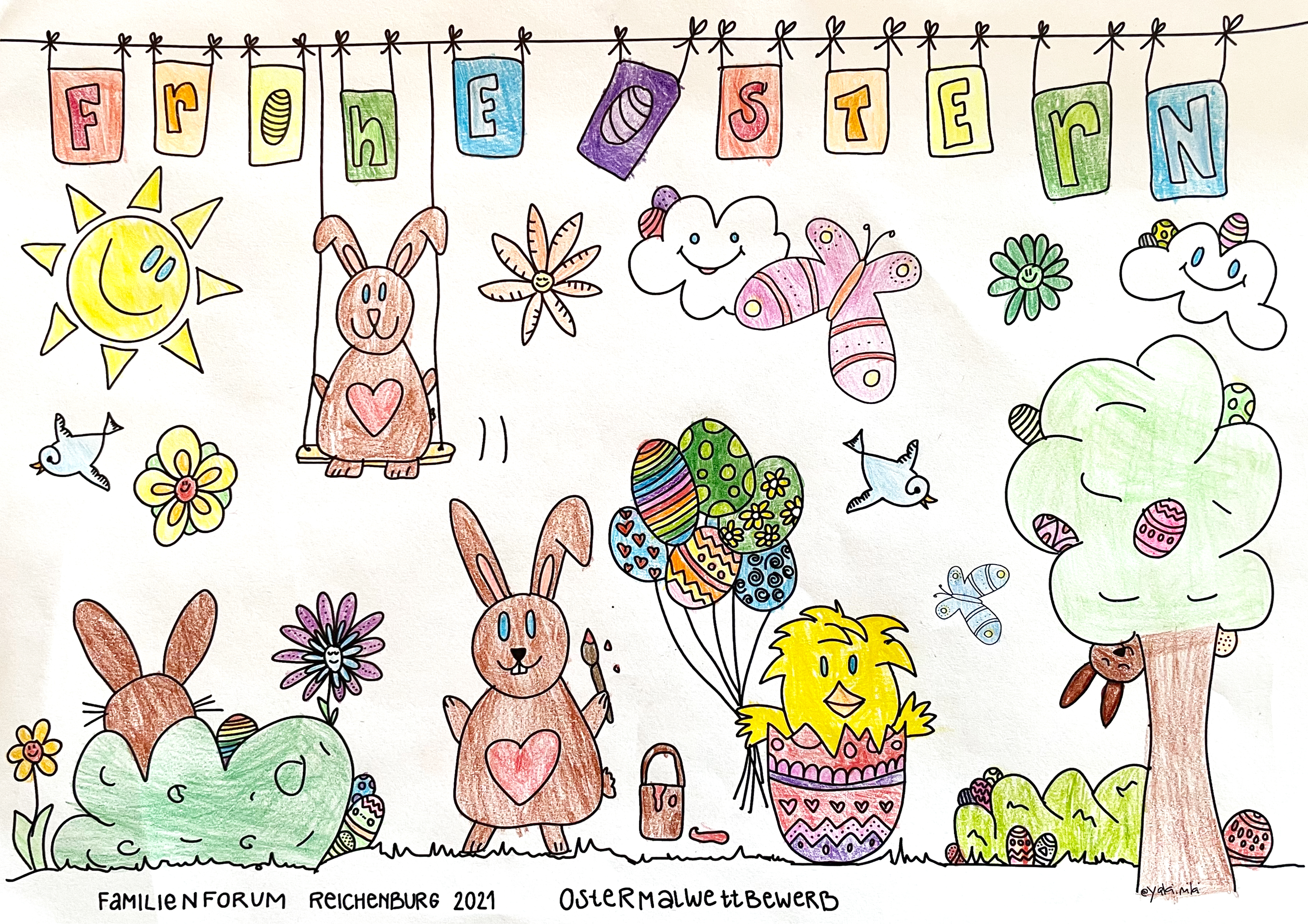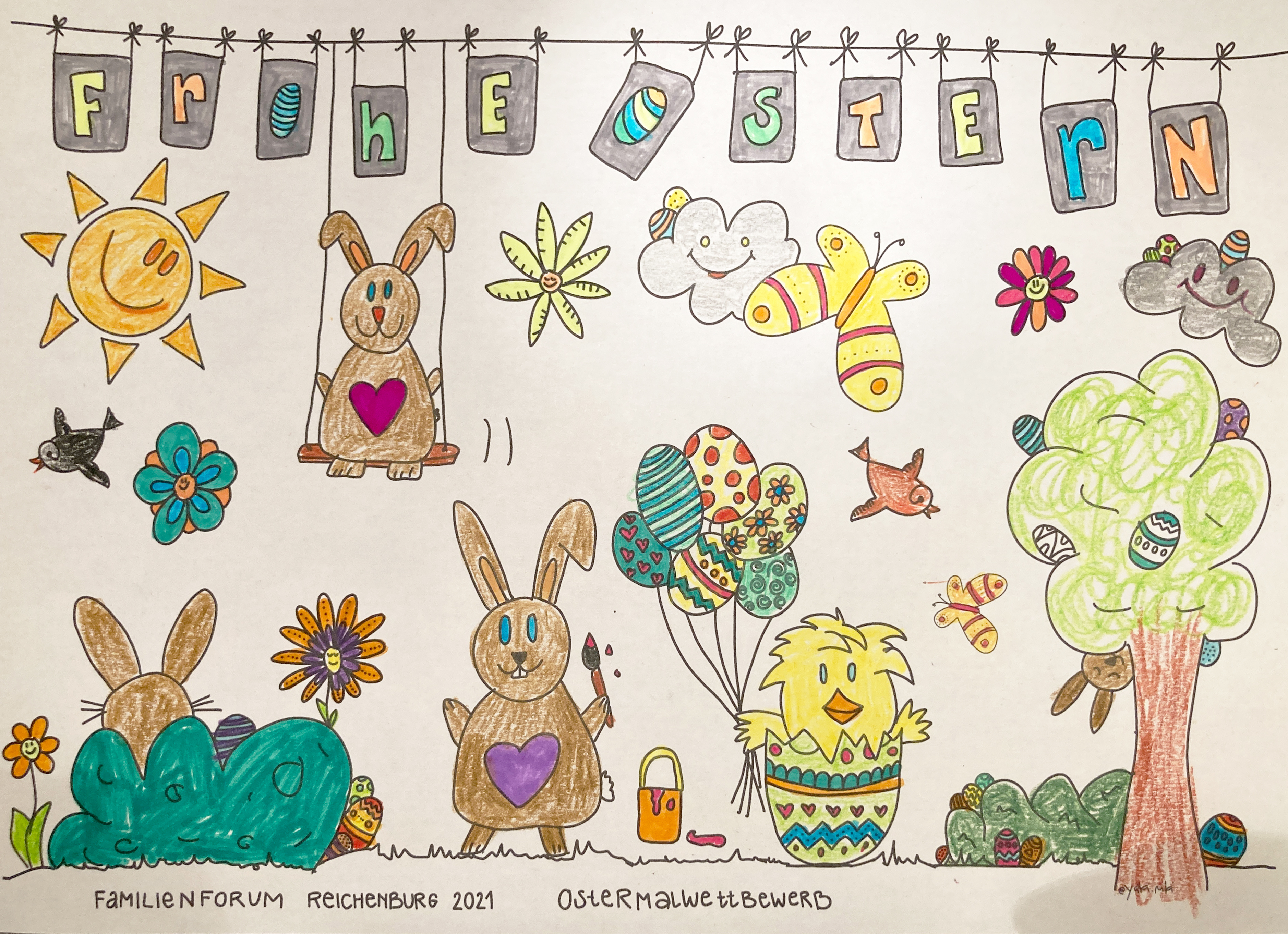 Einreichen der Zeichnungen: bis Donnerstag, 25. März 2021 per Mail an osterhase@familienforum-reichenburg.ch