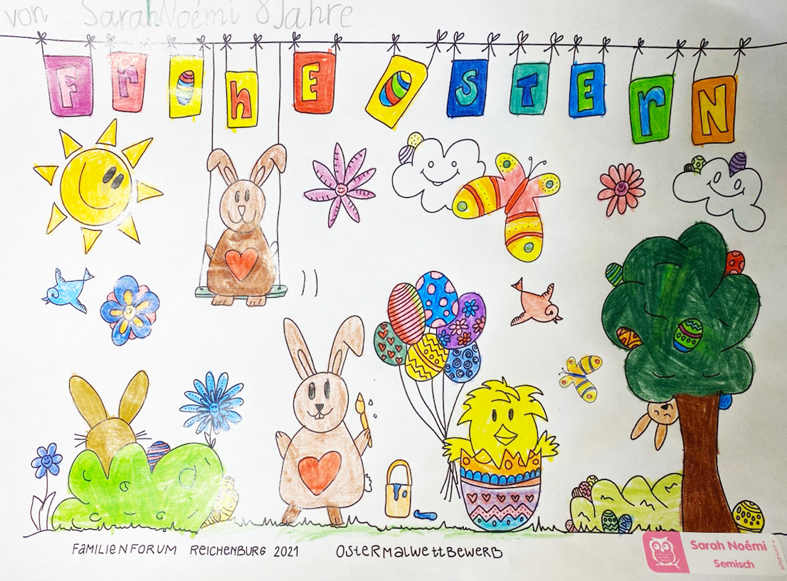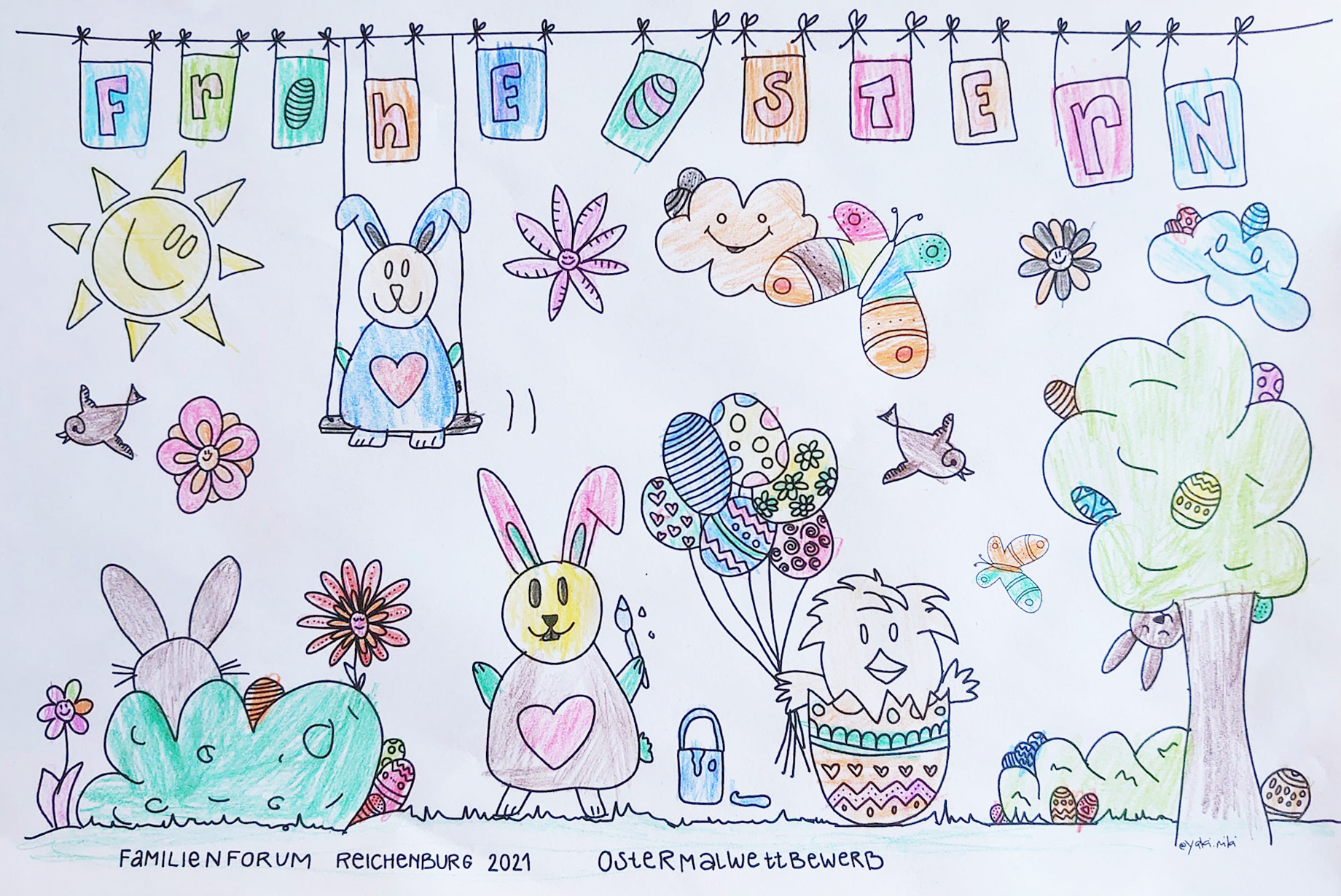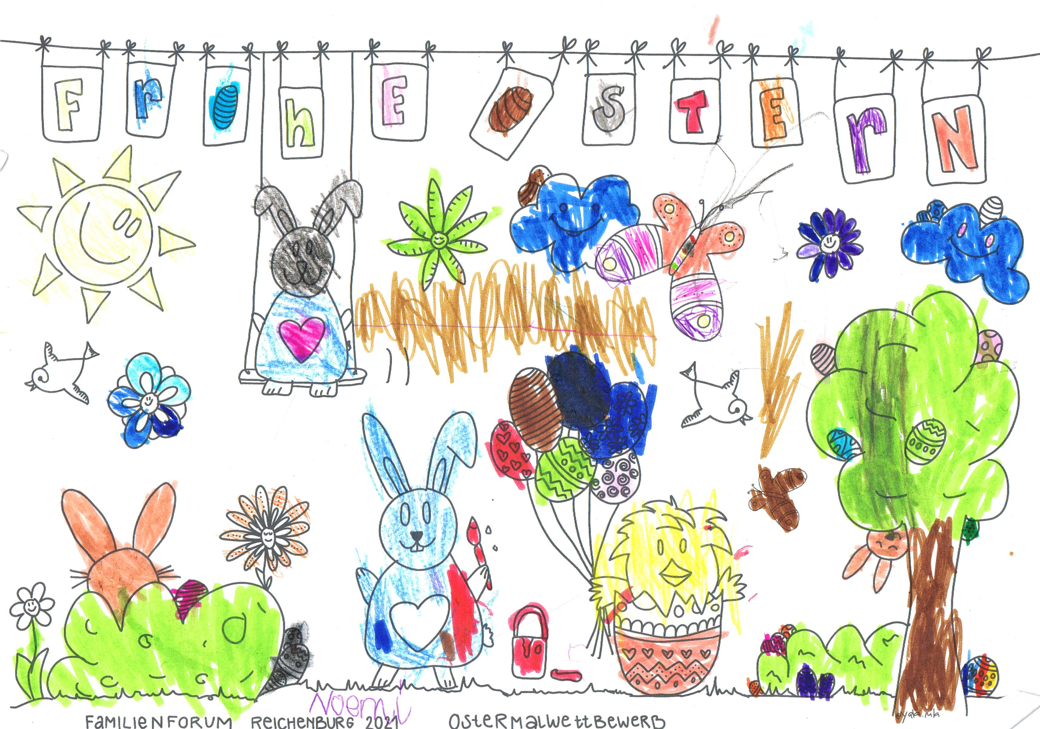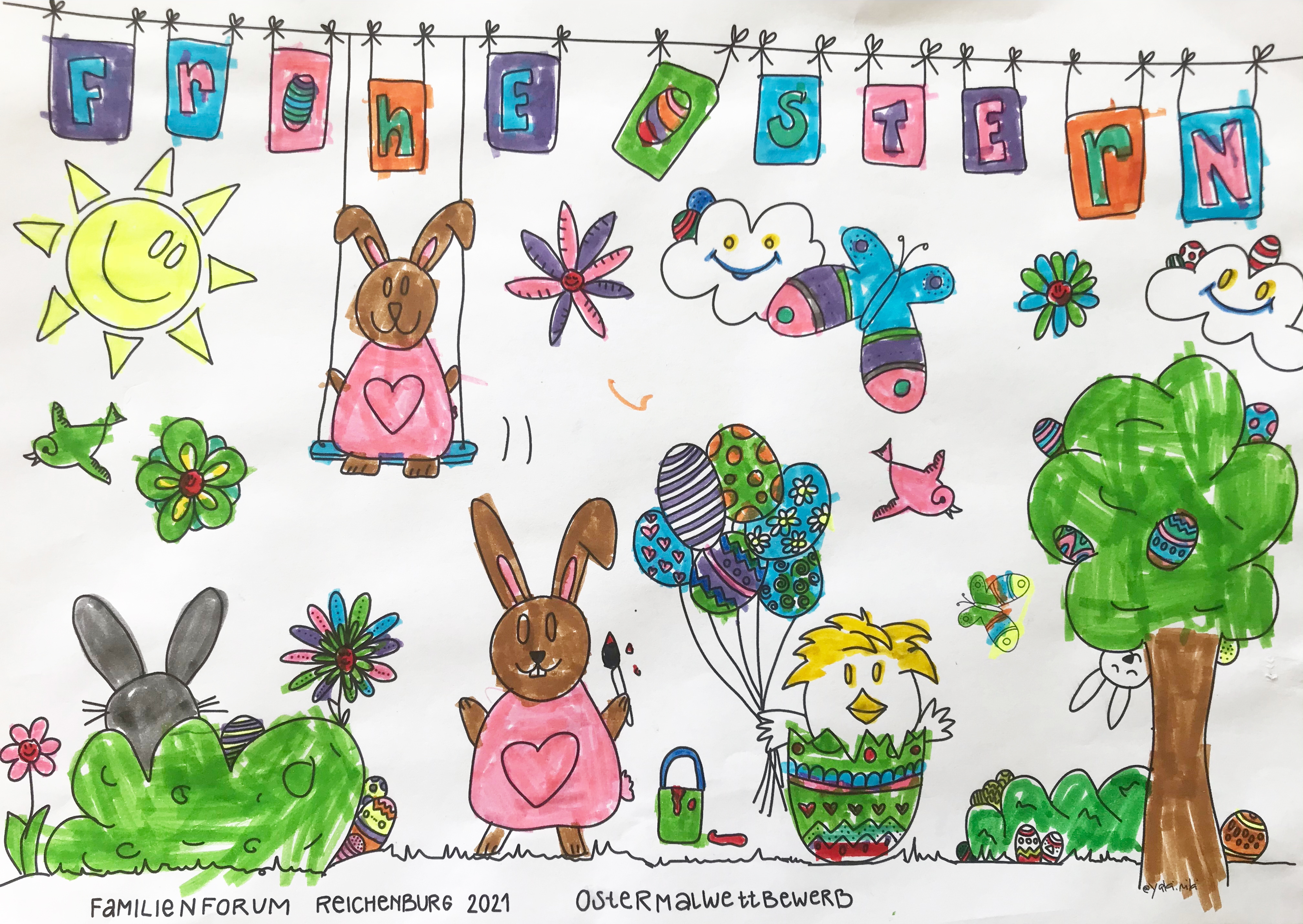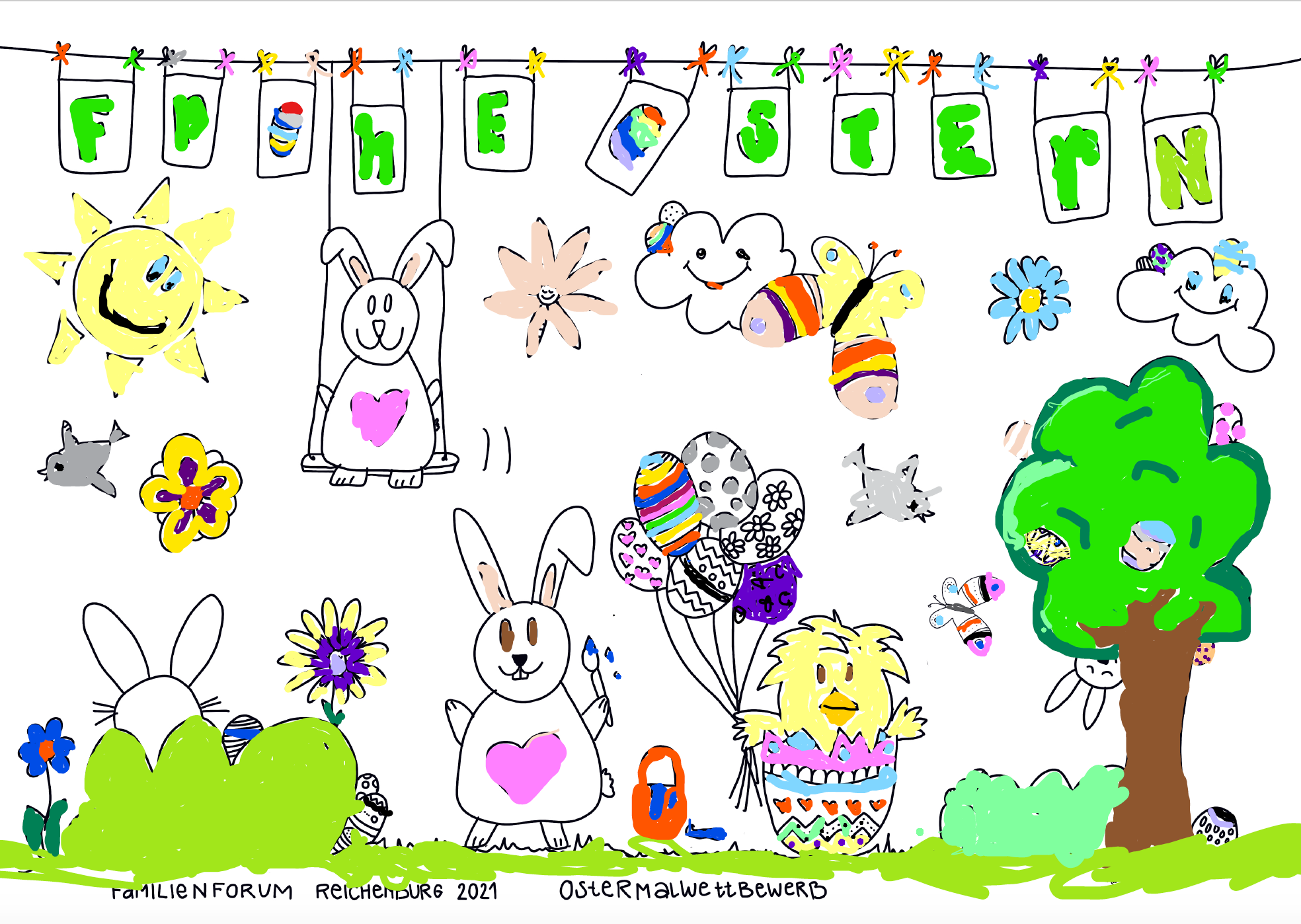 Einreichen der Zeichnungen: bis Donnerstag, 25. März 2021 per Mail an osterhase@familienforum-reichenburg.ch