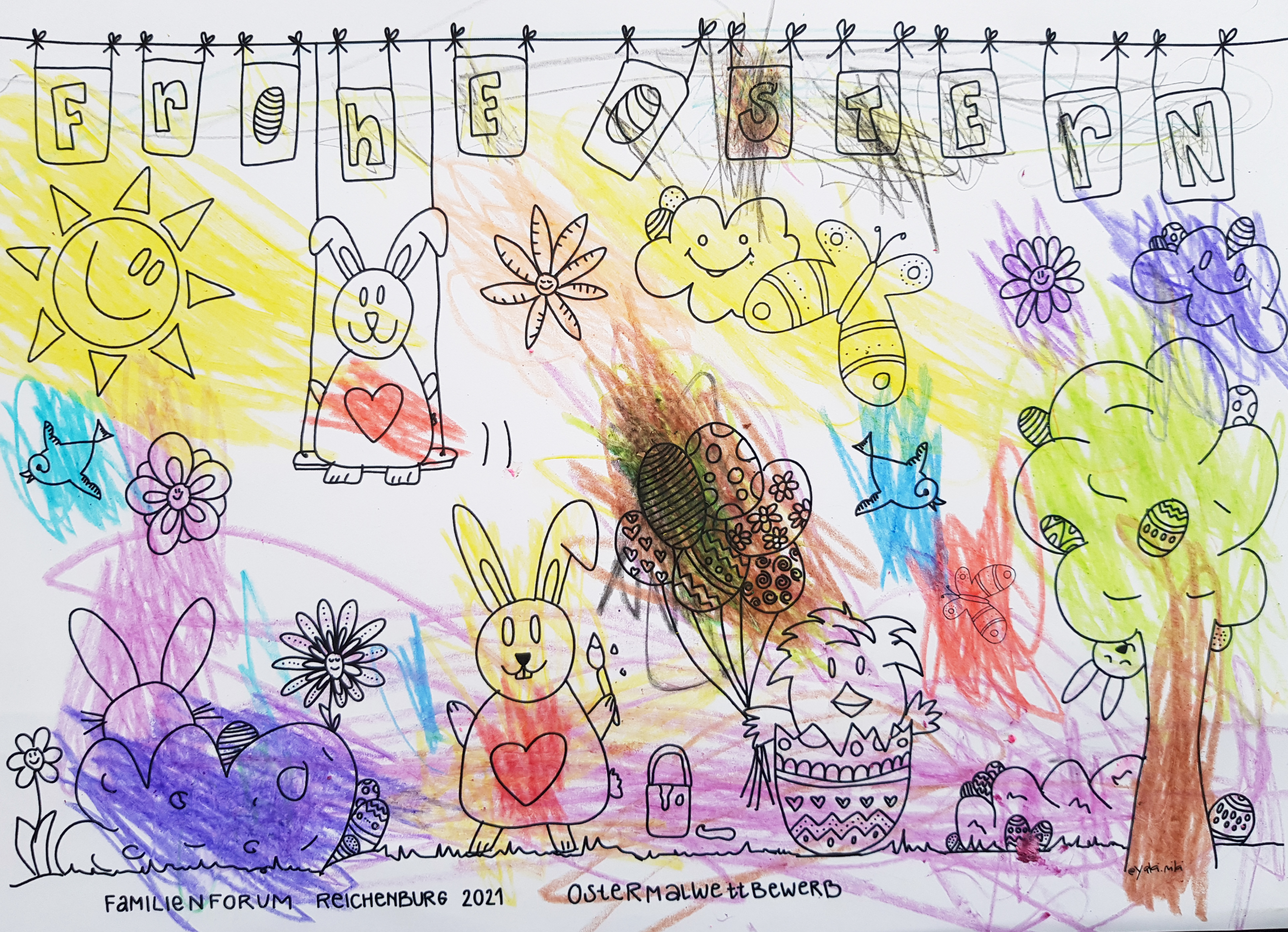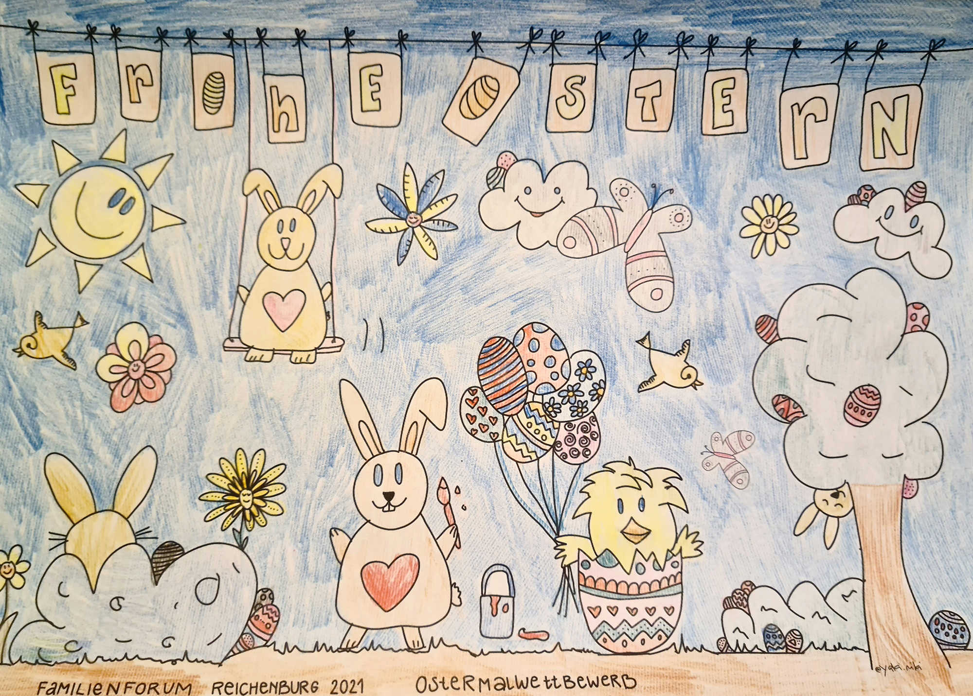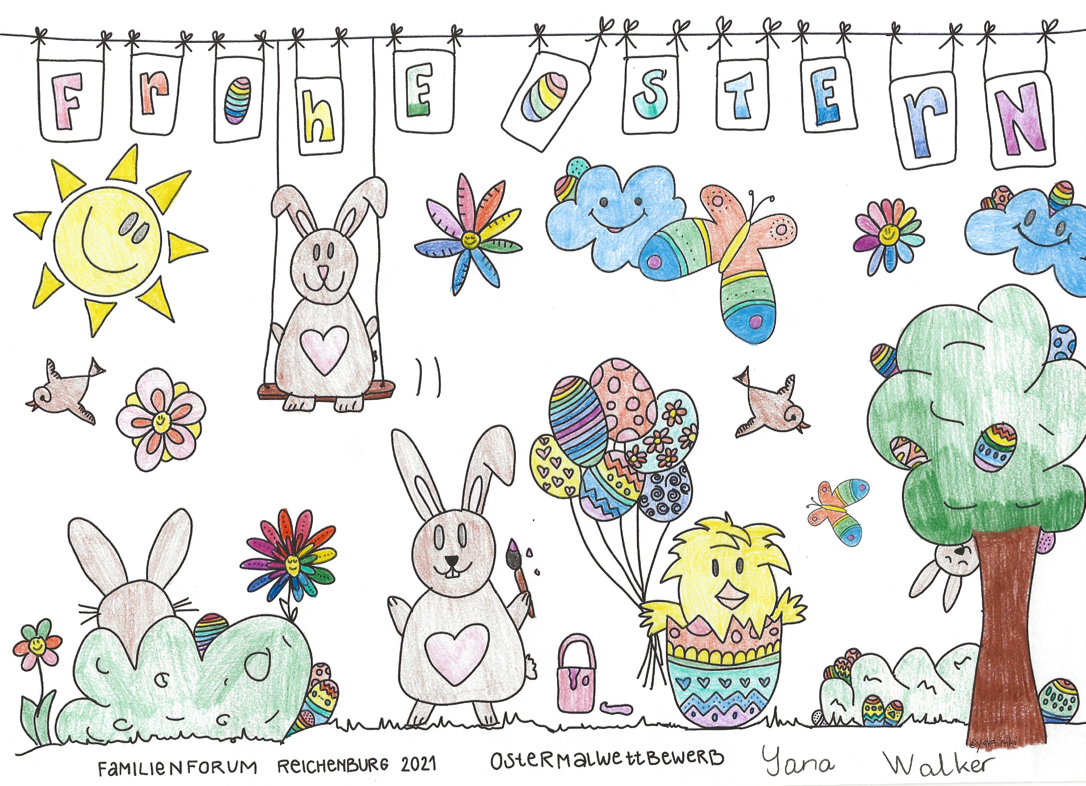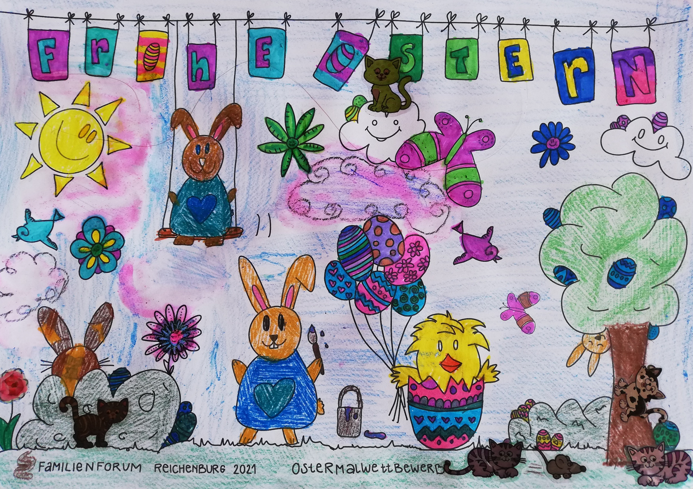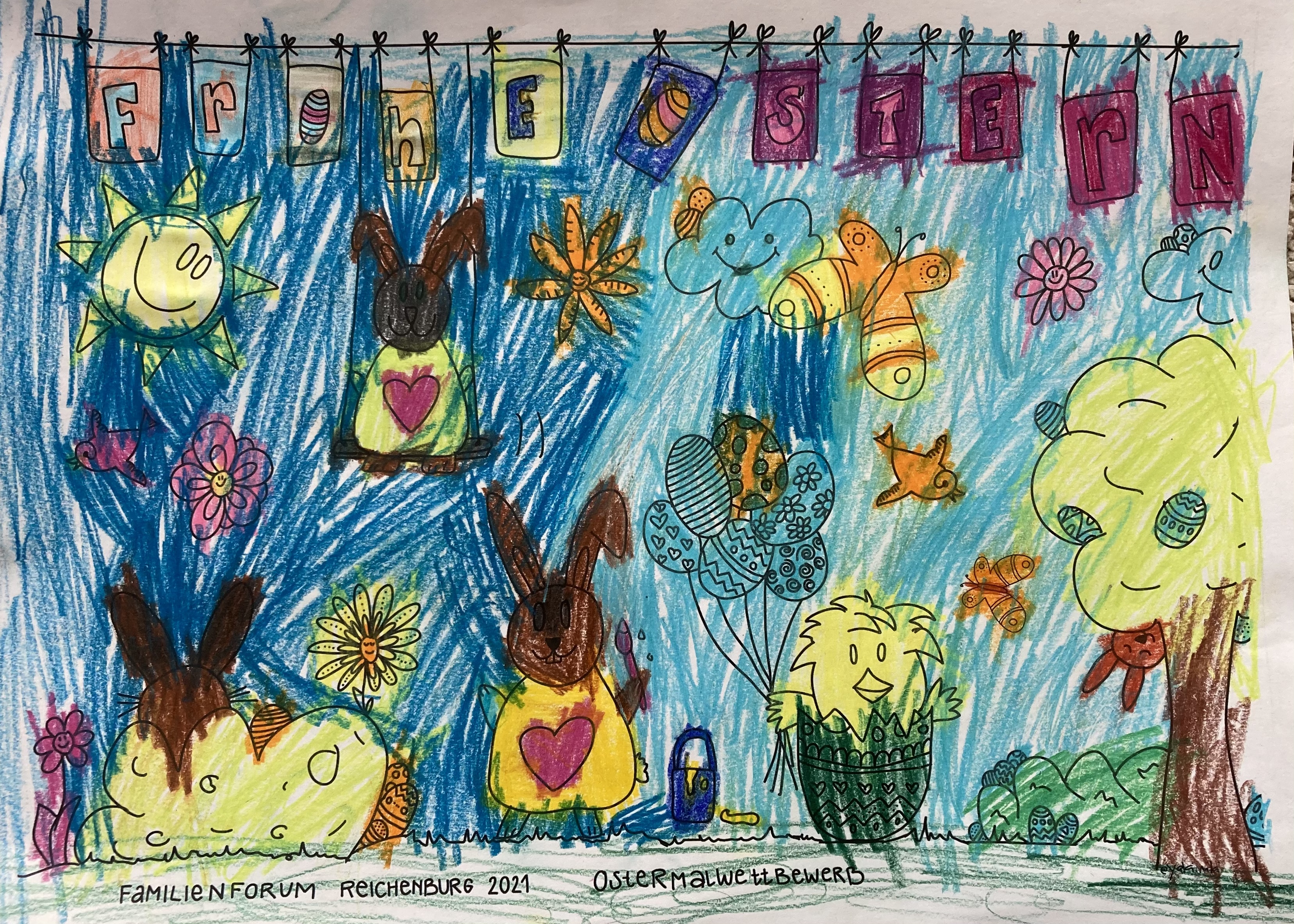 Einreichen der Zeichnungen: bis Donnerstag, 25. März 2021 per Mail an osterhase@familienforum-reichenburg.ch