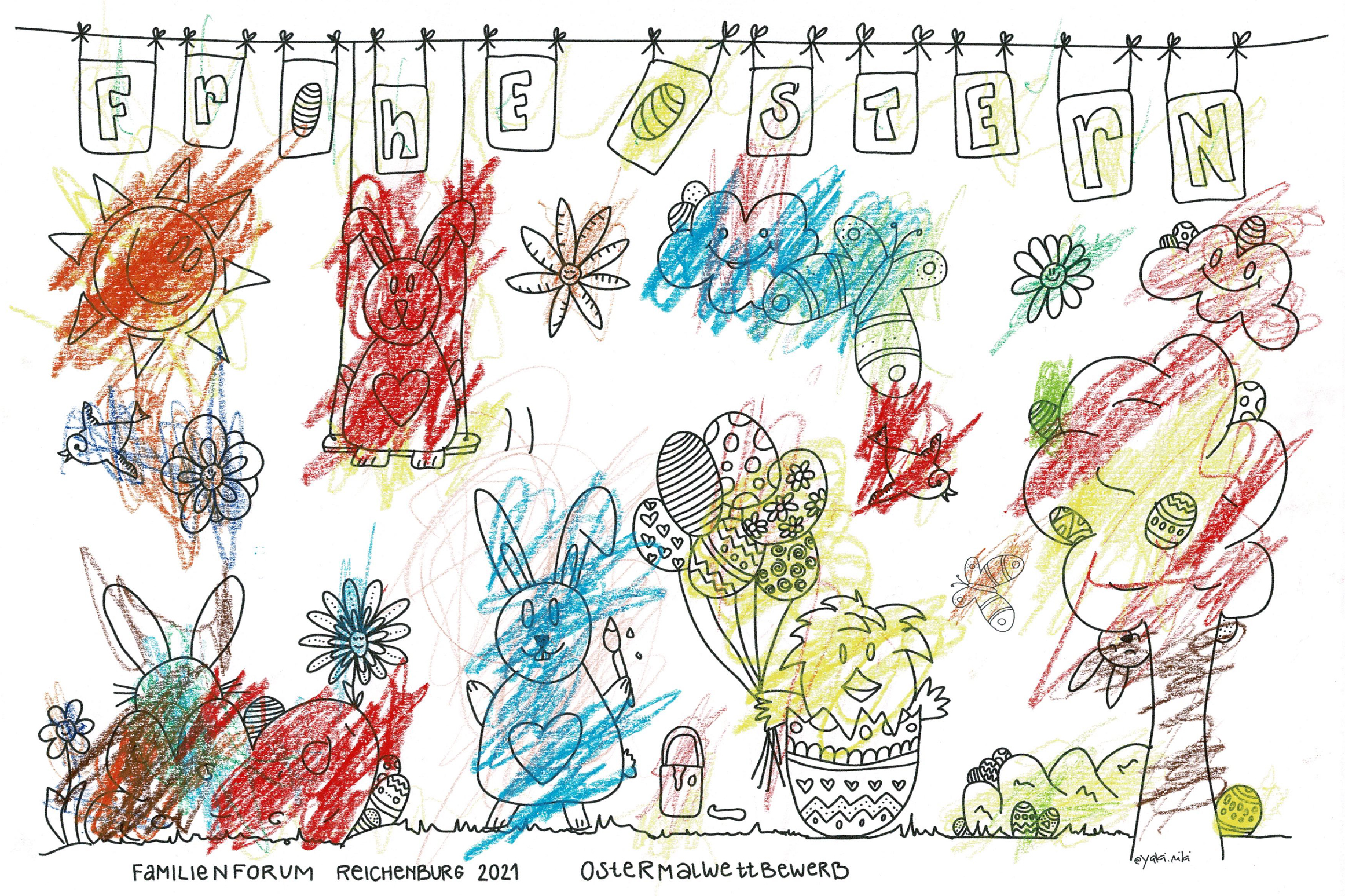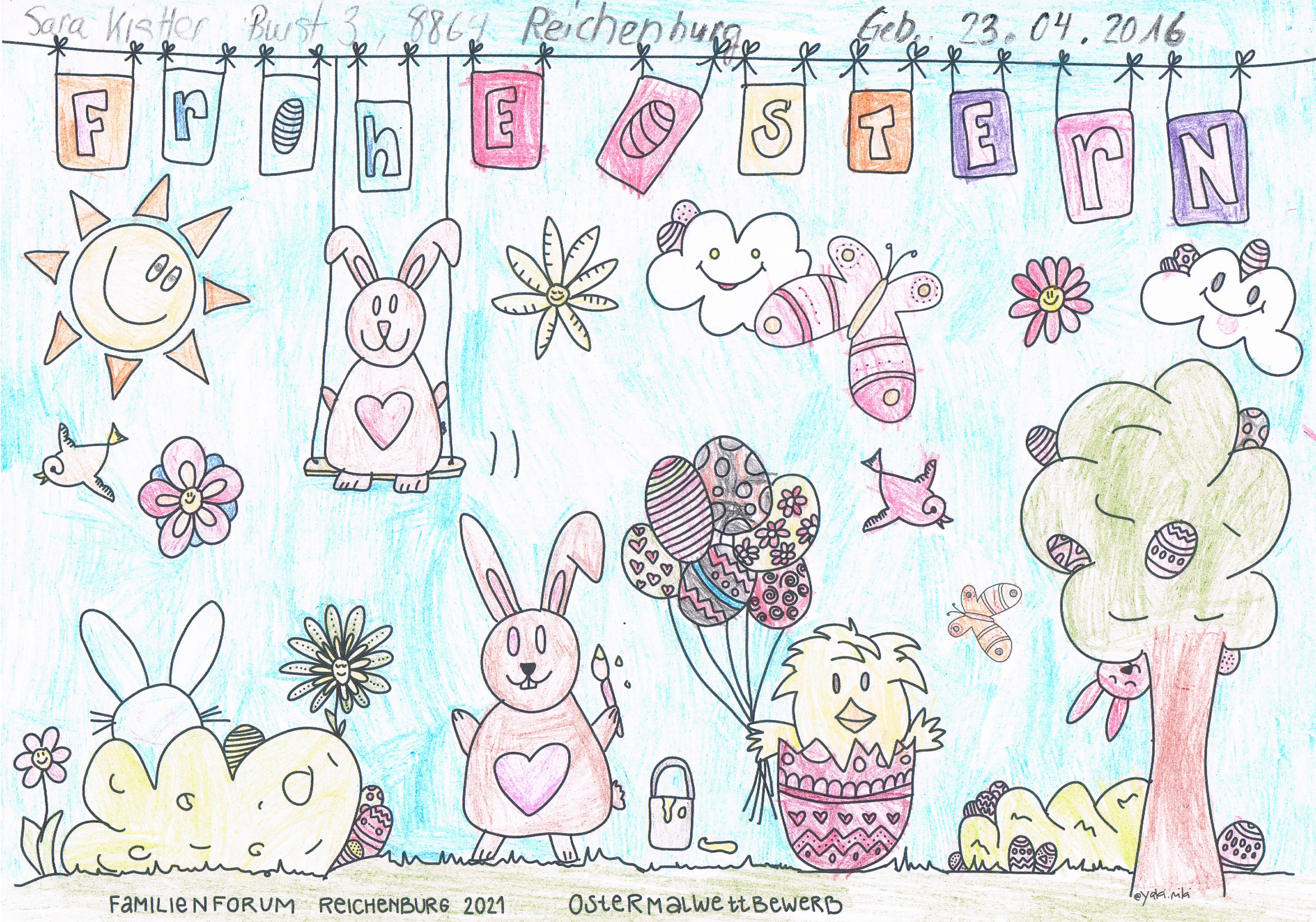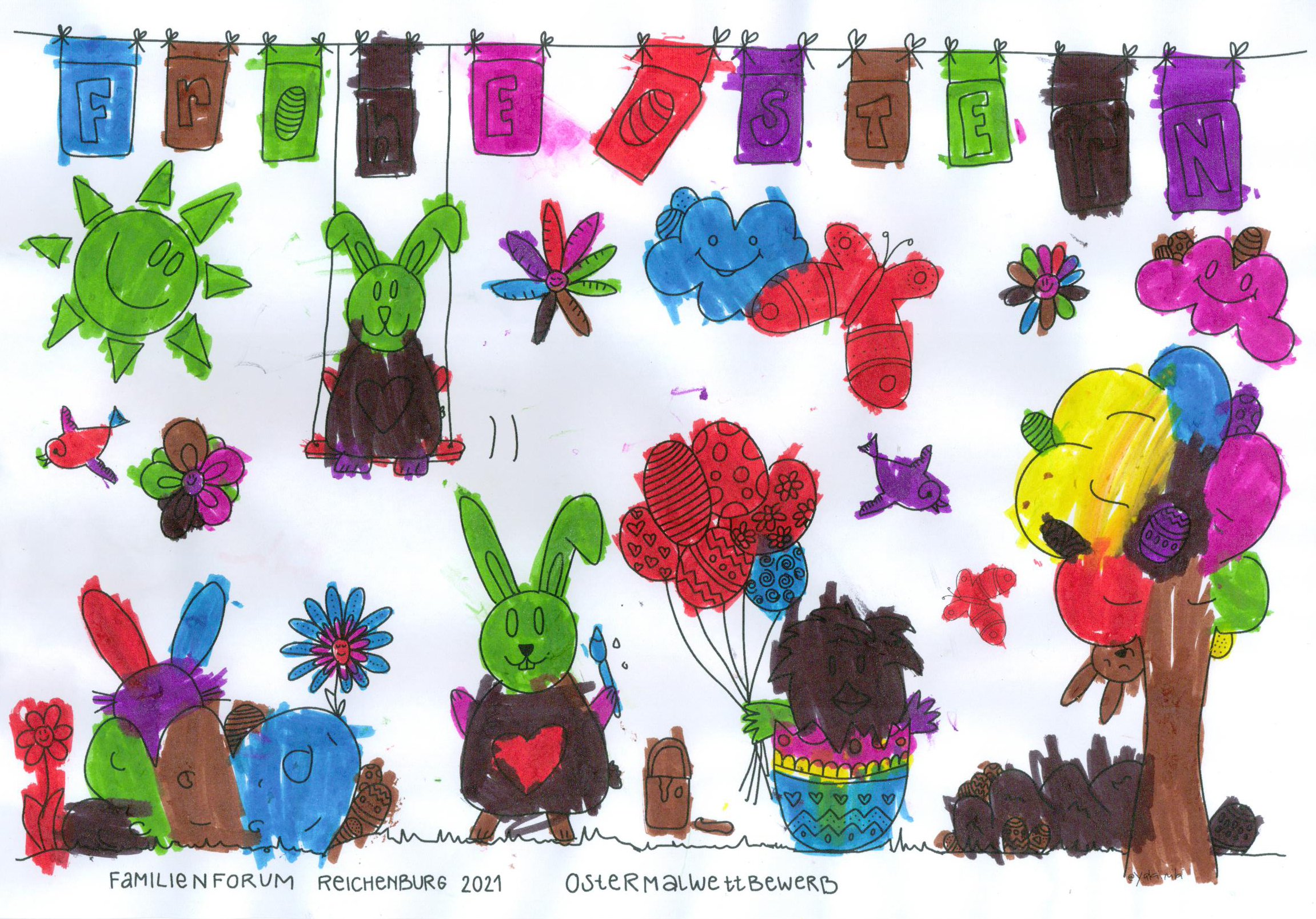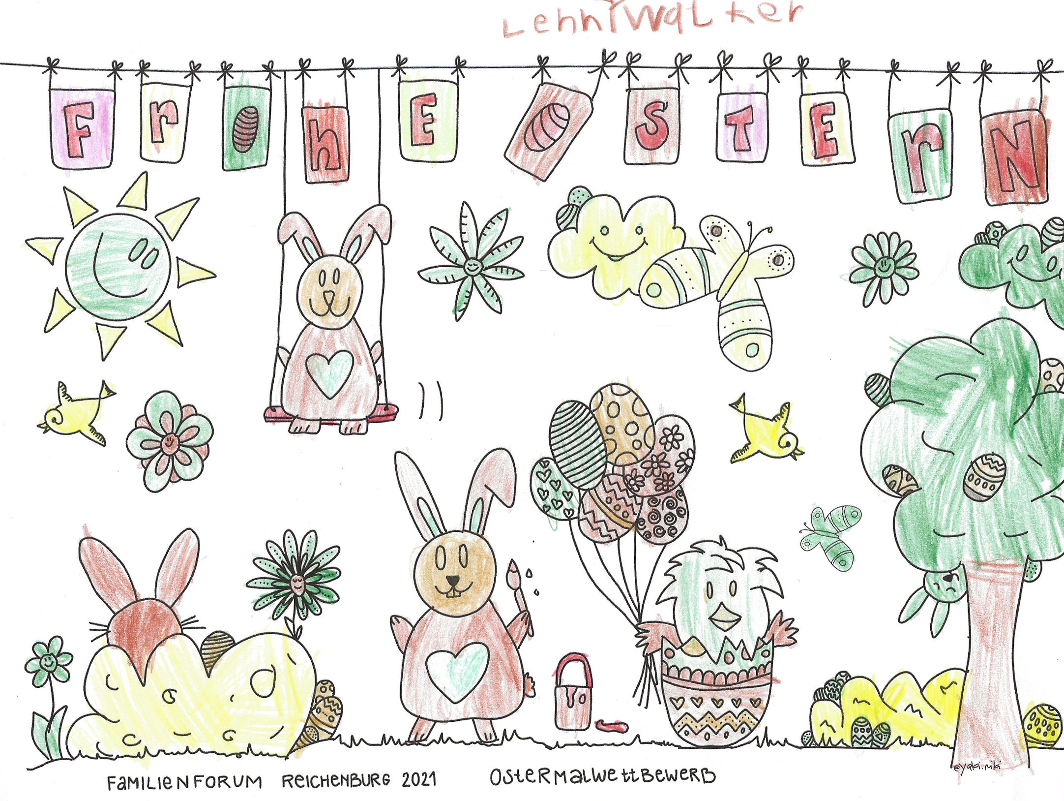 Einreichen der Zeichnungen: bis Donnerstag, 25. März 2021 per Mail an osterhase@familienforum-reichenburg.ch