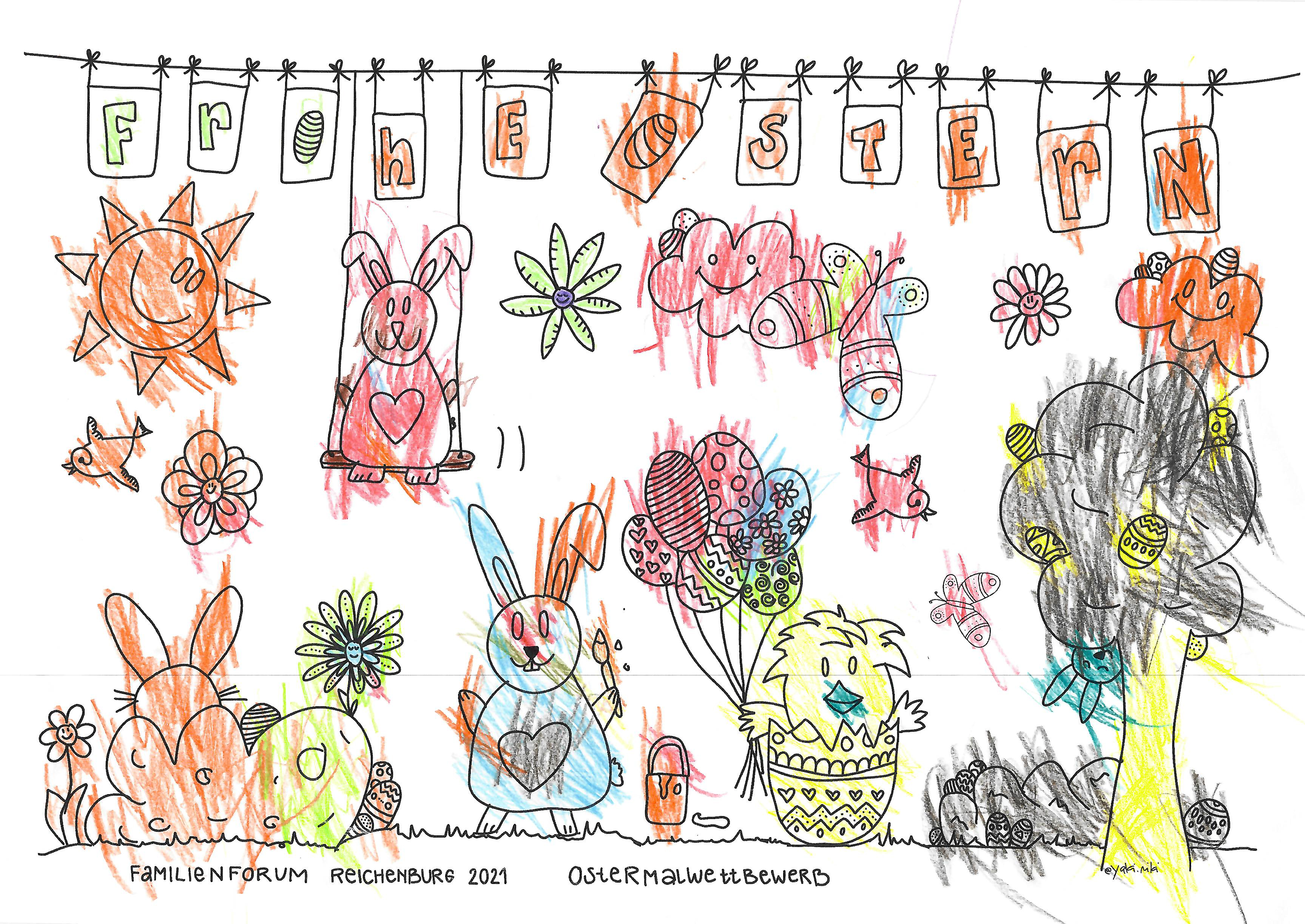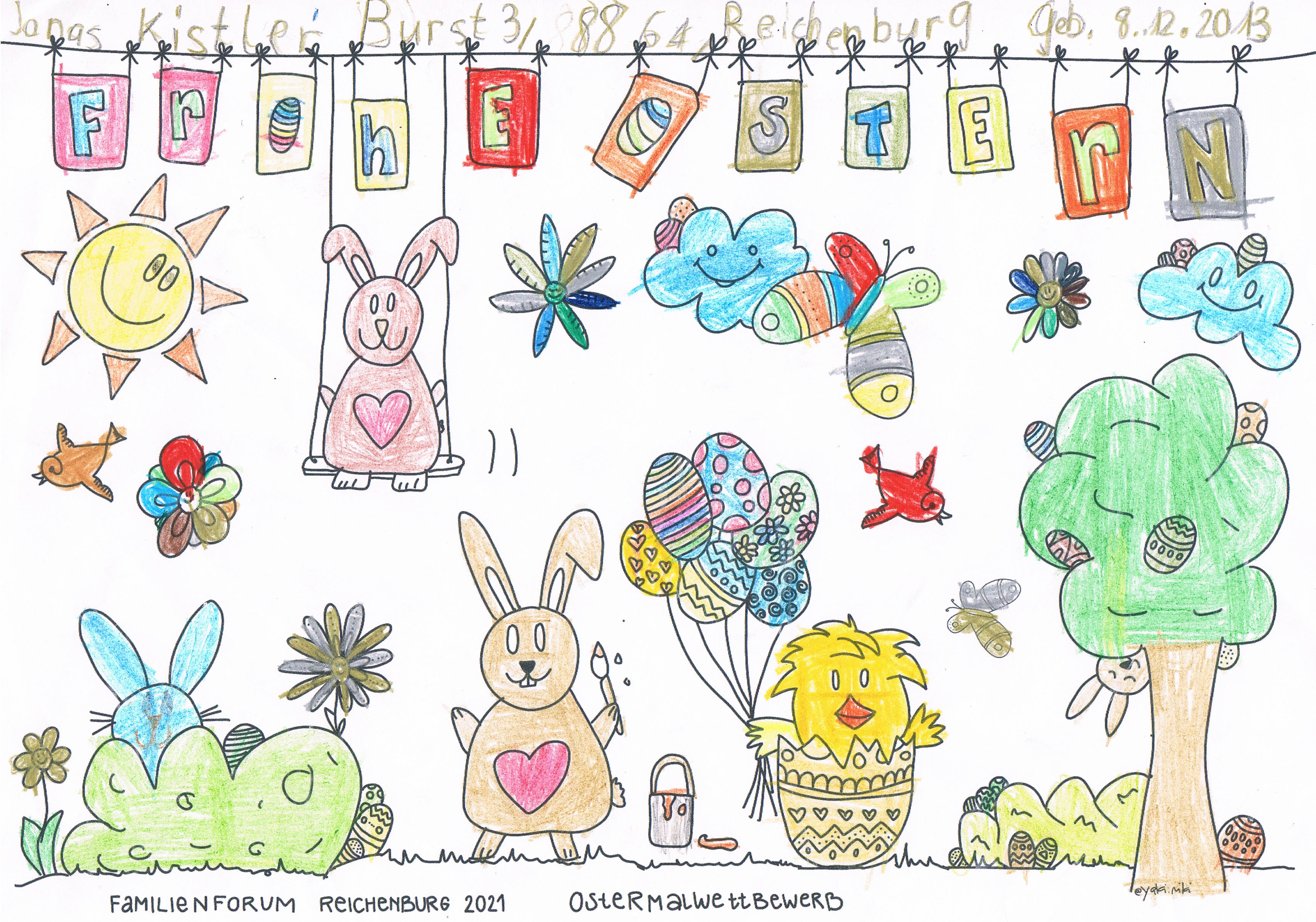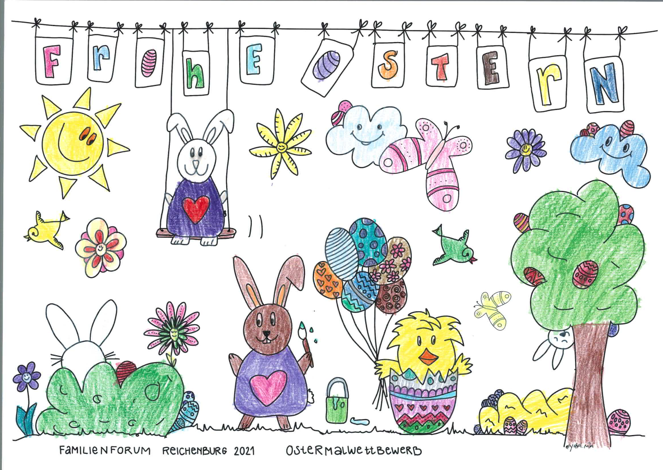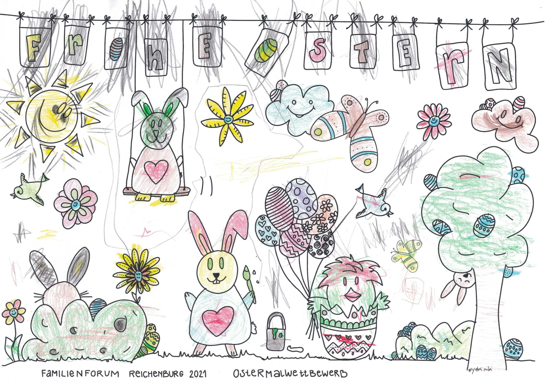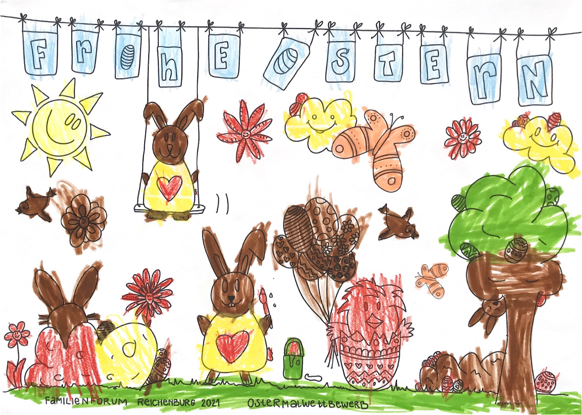 Einreichen der Zeichnungen: bis Donnerstag, 25. März 2021 per Mail an osterhase@familienforum-reichenburg.ch