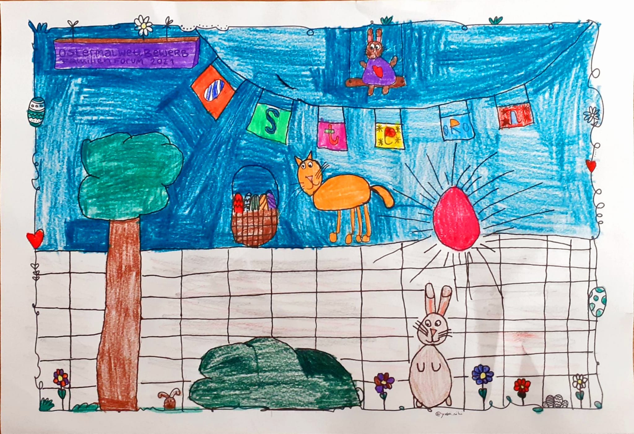Wir – und vor allem der Osterhase – freuen uns auf viele Zeichnungen.